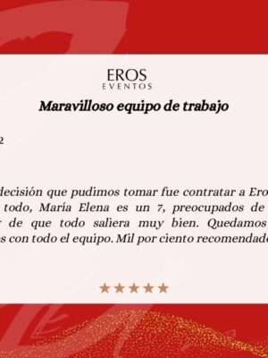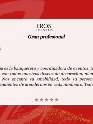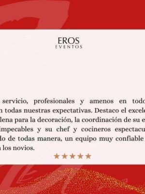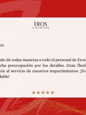 Los profesionales que trabajan en Eros cuentan con gran experiencia en el área de eventos corporativos y particulares, prestando servicio con altos estándares, poniendo como su estandarte la creatividad y pasión por su trabajo.